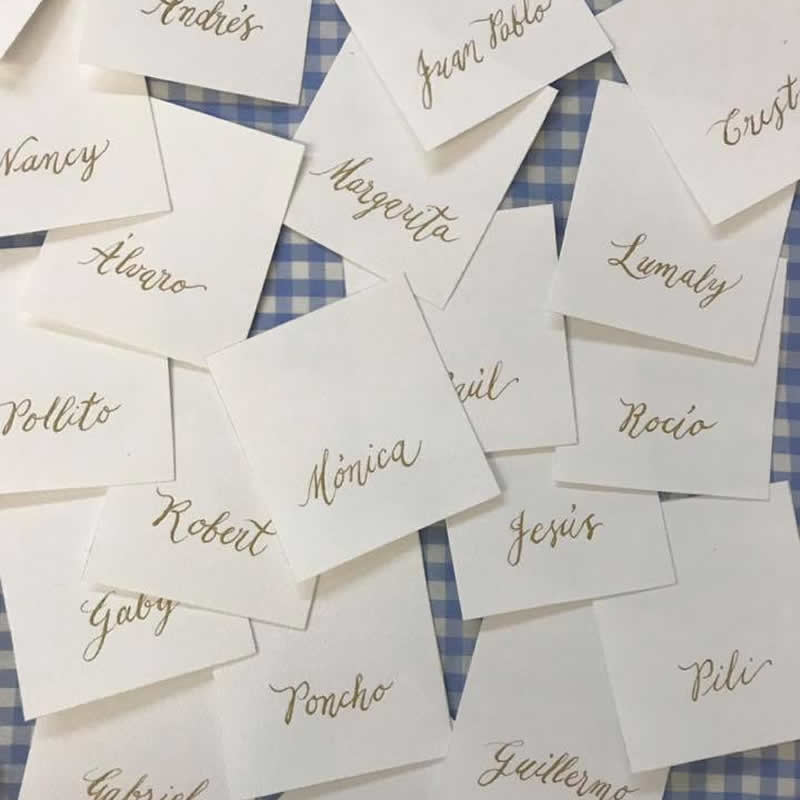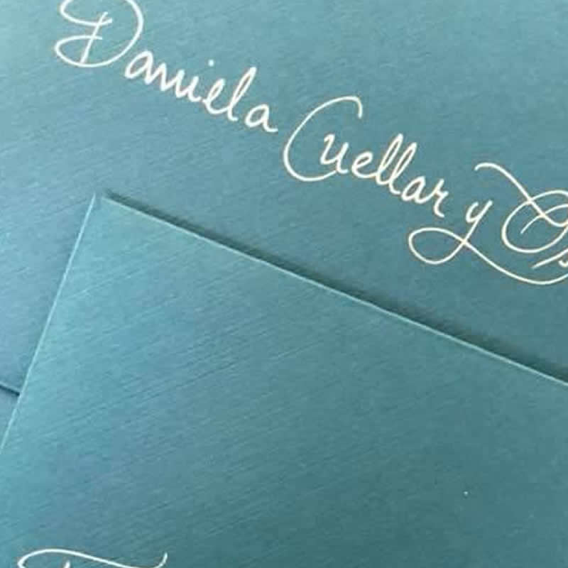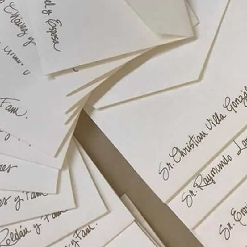 Tú puedes hacer que cada uno de tus invitados se sienta muy especial, al entregarle una participación personalizada con su nombre escrito en la más hermosa caligrafía. Entre más de 30 diferentes tipografías, selecciona un tipo de letra que refleje tu personalidad, estilo y que además será la carta de presentación para tu evento.